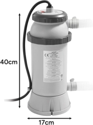 Praktický elektrický ohrievač vody INTEX s výkonom 3 kW pre nadzemné bazény s priemerom 244–457 cm zabezpečí rýchle a pohodlné zvýšenie teploty vody. Je kompatibilný s čerpadlami 2006–3785 l/h, ponúka jednoduchú inštaláciu bez náradia a bezpečnostnú ochranu vďaka RCD vypínaču. Napájanie 230 V, jednoduché ovládanie jedným tlačidlom a spoľahlivé udržiavanie teploty 17–34 °C robia z tohto ohrievača ideálnu voľbu pre rodinné bazény.