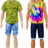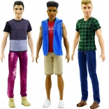 Bábika Ken je oblečená podľa aktuálnych módnych trendov a ponúka pestré kombinácie oblečenia.