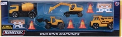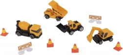 Kombinácia žltých a čiernych plastových stavebných vozidiel, ako je sklápač, miešačka, bager a nakladač, dáva deťom možnosť simulovať skutočné stavebné prostredie.