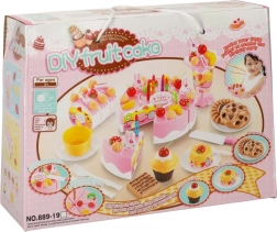 Veselá ružová sada s tortou na krájanie poteší malých cukrárov od 3 rokov. Torta zo 6 dielikov sa spája pomocou suchých zipsov a dá sa krájať plastovým nožom. Bohatá výbava ovocia, ozdôb a náradia podporuje fantáziu, rolové hry a jemnú motoriku.