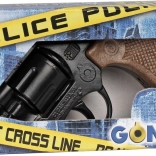 Policajný revolver – kovový, čierny na kapslíky – osem rán. Veľkosť revolvera 13×8,5 cm. Vyrobené v Španielsku.