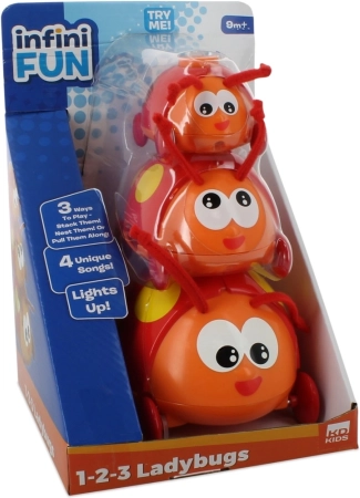 na zadnej strane, berušky začnú vydávať ďalšie zábavné zvuky. Rozvíja jemnú