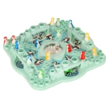 Zábavná rodinná hra, v ktorej sa farební tučniaci pretekajú po ľadovej ploche. Vďaka pop-up kocke uprostred je hra rýchla, napínavá a nepredvídateľná. Deti si precvičia počítanie, logické myslenie a jemnú motoriku, rodičia si užijú spoločný čas bez nudy. Kocka je bezpečne uzavretá v kupole, takže sa nikdy nestratí.
