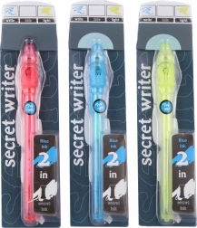 Týmto perom môžete písať neviditeľné odkazy, ktoré sú viditeľné len pod ultrafialovým svetlom. Pero s neviditeľným atramentom má takéto svetlo vo vrchnáku. Toto pero je skvelý darček pre deti, ale aj pre vašich kamarátov. Nikto totiž neuvidí, čo týmto perom napíšete, ale len čo prídete na diskotéku, všetko sa odhalí. Niektorí tiež používajú toto pero na písanie ťahákov, ale vy ho môžete použiť napríklad aj na ľúbostný odkaz! 3 druhy.