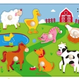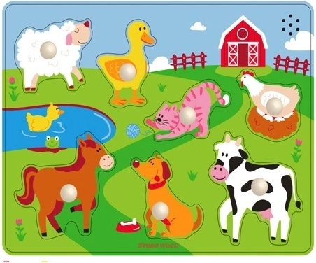 Vkladačka pomáha rozširovať slovnú zásobu – deti sa pri hre učia pomenúvať zvieratá (kravička, ovečka, koník, sliepočka a i.) a vnímať farby a tvary. Kvalitné drevené prevedenie značky STUDO WOOD je odolné a bezpečné pre malé detské rúčky.