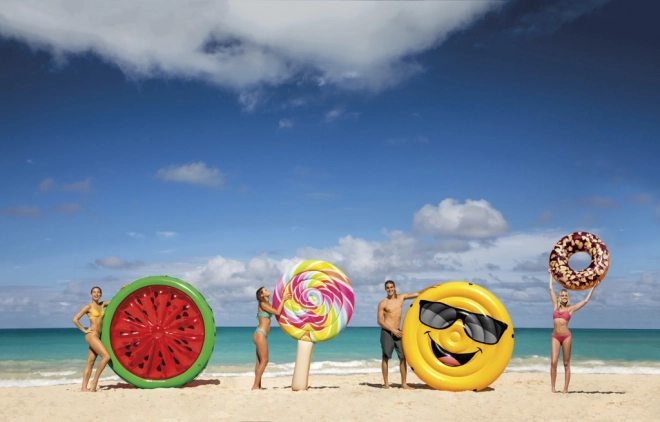 Užite si letnú zábavu s týmto nafukovacím lehátkom v tvare lízatka, ktoré prinesie farebnú radosť do vášho bazéna.