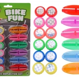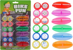 Oživte svoj bicykel štýlovými doplnkami! Táto sada obsahuje 12 veselých ozdobných koliesok a 6 odraziek pre lepšiu viditeľnosť a osobitý vzhľad. Kompaktné balenie s rozmermi 16 × 26 cm. Výrobok nie je hračka.