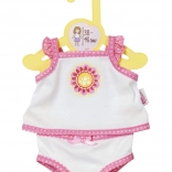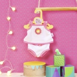 Praktické prevedenie s pružnými lemami zaisťuje pohodlné nosenie a dlhú výdrž pri každodennej hre. Sada obsahuje zladené tielko a nohavičky, ktoré možno kombinovať s ďalšími kúskami oblečenia pre bábiky.