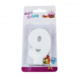 Narodeninová sviečka číslica 9 biela s trblietkami