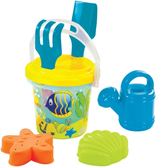 Veselá transparentná piesková sada pre deti v troch motívoch – víly, dinosaury a rybičky – prináša veľa zábavy na pieskovisku aj na pláži. Obsahuje vedierko 1,3 l, hrabličky, lopatku, sitko, kanvičku a dve formičky. Vyrobené v EÚ z kvalitného plastu.