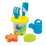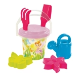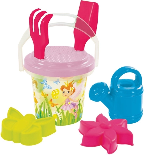 - Kompletná výbava: vedierko 1,3 l, hrabličky, lopatka, sitko, kanvička a 2 tematické formičky