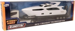 Teamsterz ťahač s člnom prináša deťom dvojitú porciu zábavy: cestnú prepravu a vodné dobrodružstvo. Realistický ťahač v bielo‑oranžovej kombinácii preváža čln na prívese, čo podnecuje fantáziu aj príbehové hranie.