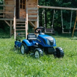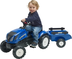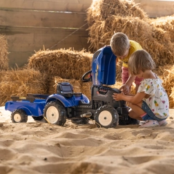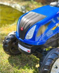 Šliapací traktor inšpirovaný skutočnými strojmi NEW HOLLAND prináša deťom realistický zážitok z riadenia. Vďaka otváracej kapote s imitáciou motora môžu malí vodiči preskúmať „vnútro“ stroja, zatiaľ čo reťazový pohon na zadnú nápravu zabezpečuje plynulú jazdu. Odnímateľný príves je ideálny na prevoz hračiek či drobných nákladov na záhrade.