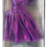 Lesklé šaty s riasením a zladenými topánkami dodajú bábike výrazný look na výnimočné chvíle.