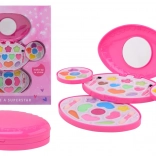 Sada detského make-upu so zrkadlom očarí každú malú parádnicu. Obsahuje očné tiene, lesky na pery a praktické zrkadlo, všetko uložené v elegantnej oválnej krabičke.
