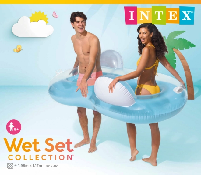 Nafukovací kruh pre dvoch má približné rozmery 198 × 117 cm.