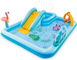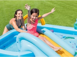 Pretvorte záhradu na zábavný vodný svet s hracím centrom INTEX. Široká šmykľavka s mäkkou podložkou zabezpečí jemné a bezpečné pristátie, zatiaľ čo plytký brod a väčší bazénik ponúknu osvieženie v horúcich dňoch. Integrovaná fontána s reguláciou prietoku vody dodá hre nový rozmer.