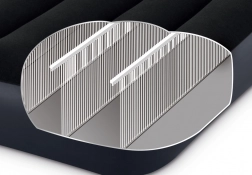 Posteľ sa ľahko nafukuje aj vyfukuje a po zložení zaberie minimum miesta. Vďaka premyslenej vnútornej konštrukcii s pozdĺžnymi komorami rozkladá váhu rovnomerne a zabezpečuje stabilitu po celú noc.