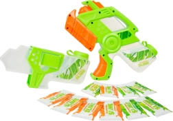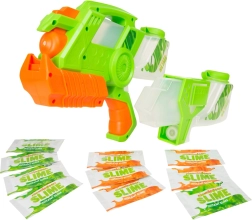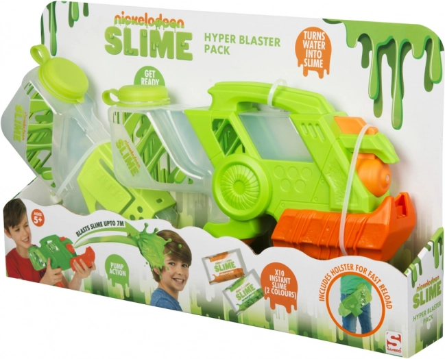 Hyper Blaster je vyrobený z odolného plastu, má ergonomickú rukoväť a priehľadnú komoru na zmes slizu. Vymeniteľný zásobník umožní bleskové doplnenie, takže akcia nikdy nekončí. Instantný sliz stačí rozmiešať s vodou podľa návodu a môžete páliť – čisto, rýchlo a bez zložitého upratovania.