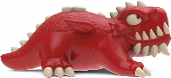 Drak je navrhnutý s dôrazom na detaily, vrátane veľkých očí, ostrých zubov a textúrovaného povrchu.