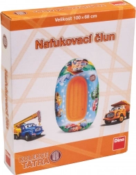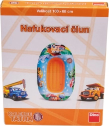 Nafukovací čln s ilustrovanými pohyblivými Tatrami.