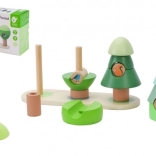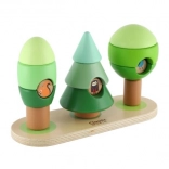 Poskladajte tri krásne zelené stromy zo 16 drevených dielikov. Deti môžu kombinovať tvary aj poradie a vytvárať vlastné varianty lesa.