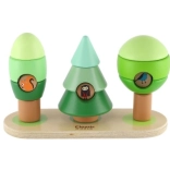 Táto rozkošná lesná skladačka prináša deťom radosť z objavovania tvarov, farieb a jednoduchých princípov skladania. Z jednotlivých dielikov vzniknú tri zelené stromy a každý z nich ukrýva iné zvieratko – sovu, ďatľa a veveričku. Vďaka pevnému drevu a príjemnému prevedeniu sa sada ľahko drží aj najmenším rúčkam.