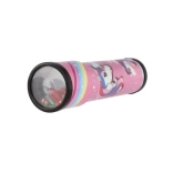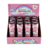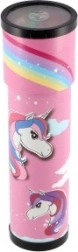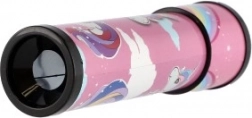 Veselý ružový dizajn s jednorožcom a dúhou podporuje fantáziu a z kaleidoskopu robí obľúbenú hračku pre malých snílkov.