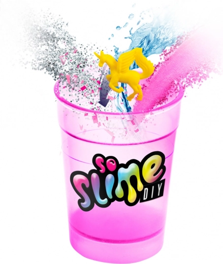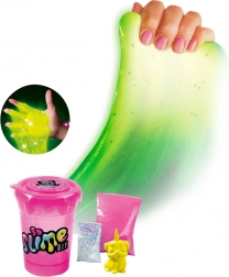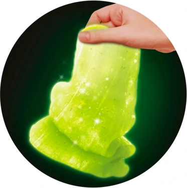Vyrobte si vlastný sliz. Nasypte do kelímka prášok, pridajte glitre a figúrku. Nalejte vodu až po rysku, zatvorte kelímok a zmes poriadne pretrepte. Potom kelímok otvorte a počkajte päť minút. Sliz je hotový. Kombinujte farby, pridávajte trblietky a užite si tú pravú zábavu so slizom. Svieti v tme. Pre deti od 6 rokov.