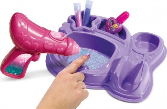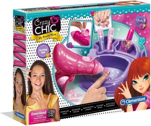 Sada Crazy Chic prináša všetko, čo malé stylistky potrebujú na krásne upravené nechty. Naneste lak, použite pero vystreľujúce trblietky a počas chvíľky vytvoríte lesklé, farebné a výrazné zdobenie. Intuitívne pracovisko udrží všetky doplnky na svojom mieste a spríjemní celý proces.