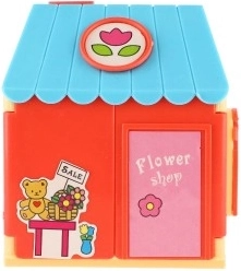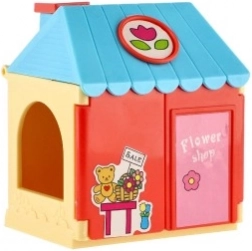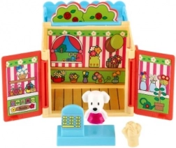 Veselý domček s motívmi kvetov a pokladničkou učí deti kombinovať farby, aranžovať a starať sa o zákazníkov.