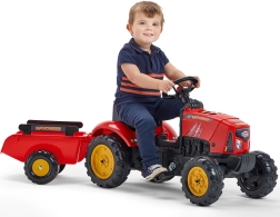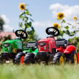 Robustný detský traktor na pedále je vyrobený z kvalitného a odolného plastu a navrhnutý na každodenné hranie. Vďaka reťazovému pohonu na zadnú nápravu a otočnej prednej náprave sa ľahko ovláda a podporuje rozvoj motoriky aj rovnováhy. Otvárateľná kapota s imitáciou motora pridáva realistické detaily, ktoré deti milujú.