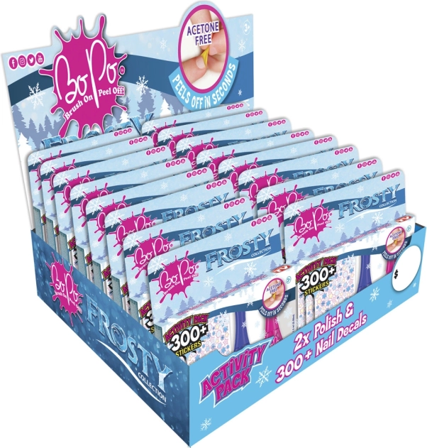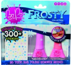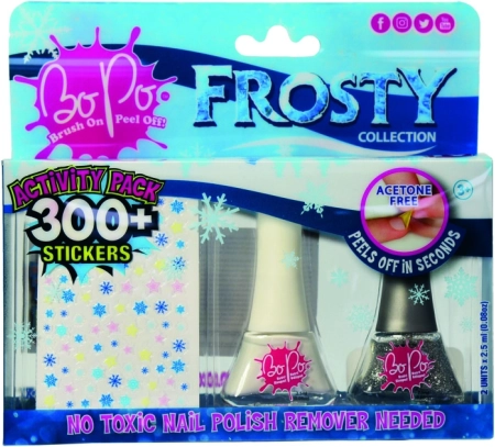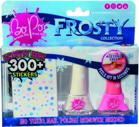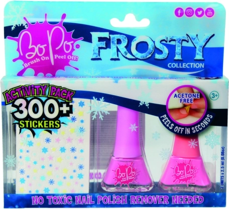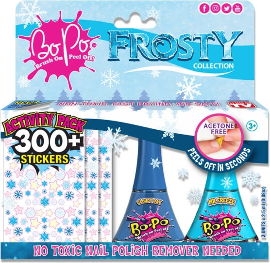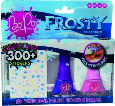Bo-Po Ľadové Kráľovstvo prináša revolúciu v detskej manikúre. Už žiadne chemické odstraňovače! Tento acetone-free lak sa ľahko nanáša a po zaschnutí ho môžete jednoducho zlúpnuť, a tak prakticky ihneď vyskúšať novú žiarivú farbu.