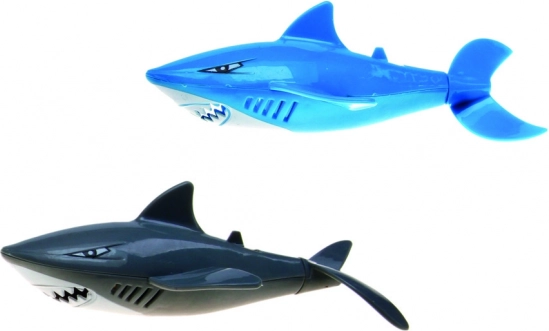 Hračka prichádza v dvoch prevedeniach: modrej a čiernej. Oba žraloky majú pohyblivé chvosty pre zábavnú hru vo vode.