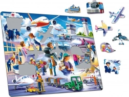 Ponorte sa do sveta pilotov, letušiek a pasažierov s puzzle LARSEN Letisko. Obrázok je zložený z nepravidelných dielikov bez klasických zámkov, čo prináša sviežu výzvu a rozvíja predstavivosť aj jemnú motoriku detí. Vďaka pevnému okraju a doskovému prevedeniu je skladanie jednoduchšie a skladovanie bez starostí.