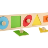 Každý tvar je farebne odlíšený a s gombíkom pre ľahké uchopenie a manipuláciu.