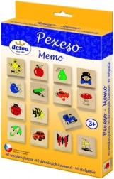 Drevené pexeso od spoločnosti Detoa je skvelou voľbou pre deti od 3 rokov. Toto pexeso obsahuje 40 dielikov o rozmeroch 4x4x1 cm, ktoré sú zdobené farebnými obrázkami, ktoré pomáhajú deťom naučiť sa rozličné symboly a farby. Kľúčové vlastnosti: