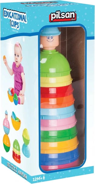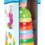 Táto stavebnica obsahuje 10 farebných kalíškov, ktoré možno skladať do tvaru pyramídy. Je skvelou pomôckou pre deti, ktoré sa učia koordinácii rúk a očí, rozpoznávaniu farieb a riešeniu problémov. Výška celej pyramídy je 28 cm, čo je ideálna veľkosť pre malé deti.