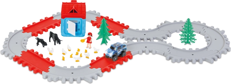 Cesty – autodráha so zvieratkami a domčekom. Súčasťou balenia je autíčko na batériu. Rozmery zostavenej autodráhy sú 98 cm dlhá a 61 cm široká.