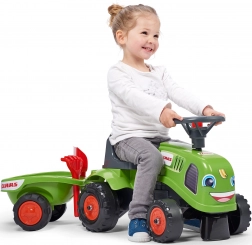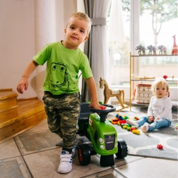 Roztomilý zelený traktor – odrážadlo pre najmenších – je vyrobený z kvalitného plastu a je stabilný a bezpečný pre prvé jazdecké pokusy. Vďaka kompaktným rozmerom a nízkej hmotnosti sa ľahko ovláda, pričom otočná predná náprava a volant s klaksónom zaručia veľa zábavy.