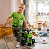Súčasťou je odnímateľný príves, hrabličky, lopatka a samolepky – deti si traktor prispôsobia a užijú si ešte pestrejšie hranie.