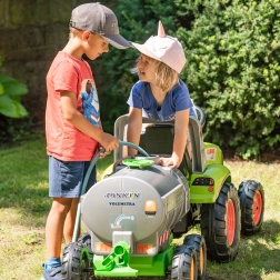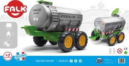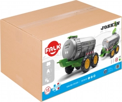 Príves „Cisterna“ Joskin štvorkolesový, zelenej farby, do ktorého môžete skutočne napustiť vodu. Kompatibilný s traktormi Falk. Vyrobené z kvalitného plastu vo Francúzsku.