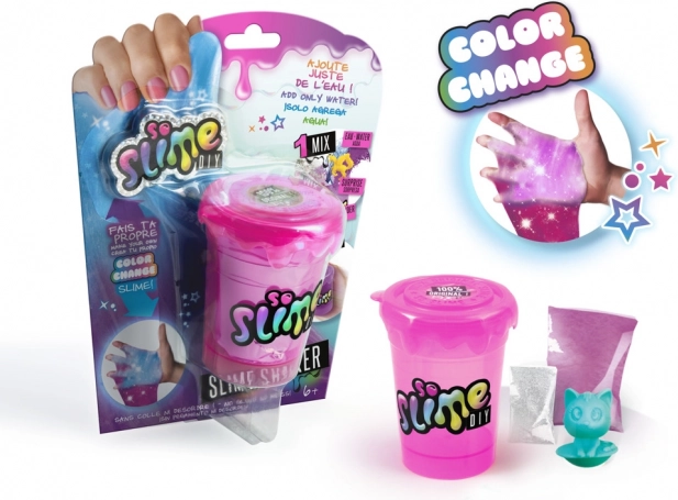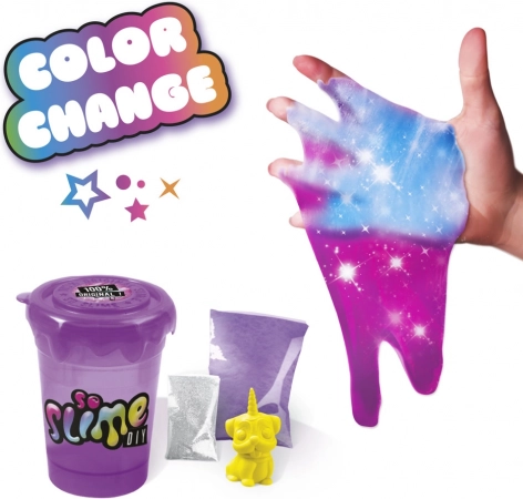 S kreatívnou sadou So Slime Menič Farby sa z vás stane majster tvorby slizu. Stačí do kelímka nasypať prášok, pridať glitre a figúrku. Potom pridajte vodu až po rysku, zatvorte kelímok a dôkladne zmes pretrepte. Kelímok otvorte a počkajte päť minút, kým sa sliz vytvorí. Kombinujte jednotlivé farby, pridávajte trblietky a užite si hodiny zábavy. Nezabudnite, že táto zábava je 100% netoxická, a preto je úplne bezpečná pre deti. Výroba slizu navyše podporuje kreativitu a zvedavosť.