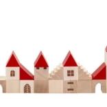 Táto drevená stavebnica obsahuje 100 dielikov v rôznych tvaroch a veľkostiach, ktoré umožňujú deťom vytvoriť vlastné malé mestečko. Vďaka farebnému prevedeniu s červenými strechami a prírodným drevom je táto stavebnica nielen krásna, ale aj plne funkčná pre imaginatívnu hru. Pomáha rozvíjať jemnú motoriku a priestorové vnímanie u detí.
