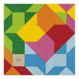 Rozmanité tvary a farby učia deti rozpoznávať a kombinovať geometrické prvky. Skladanie vzorov rozvíja priestorovú predstavivosť a logické uvažovanie zábavnou formou.