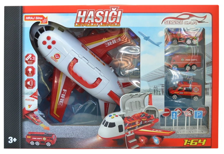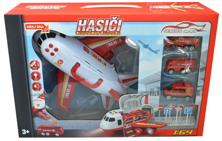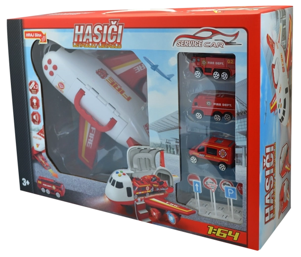 Súčasťou sady sú tri detailne spracované kovové autíčka v mierke 1:64. Pripravené ihneď vyraziť k zásahu z paluby lietadla alebo z garáže s rampou.