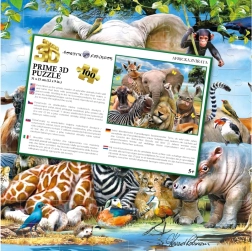 Objavte fascinujúci svet skladania s 3D puzzle Africký úsmev. Špeciálna lentikulárna tlač vytvára výrazný 3D optický efekt, ktorý prináša realistický pocit hĺbky a oživuje motív africkej fauny. Hotový obrázok sa stane krásnou dekoráciou detskej izby a zároveň rozvíja trpezlivosť, sústredenie a jemnú motoriku.