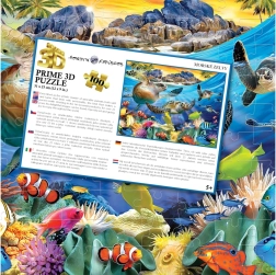 Objavte čaro priestorového skladania s 3D puzzle Korytnačia pláž. Špeciálny optický efekt dodáva obrázku hĺbku, takže niektoré postavy či predmety pôsobia vzdialenejšie než tie v popredí. Deti si pri skladaní precvičia jemnú motoriku, trpezlivosť aj vnímanie detailov a zároveň zažijú radosť z dokončeného obrázka.