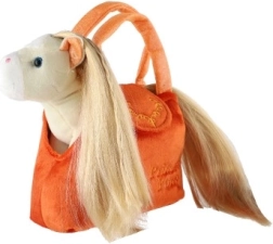 Táto oranžová plyšová kabelka ukrýva vo vnútri rozkošného koníka, ktorého možno kedykoľvek vybrať a zasa vrátiť späť. Dlhá, hebká hriva priamo nabáda k česaniu a zapletaniu vrkôčikov, čo rozvíja jemnú motoriku a kreativitu.