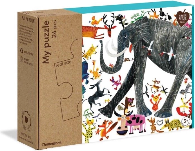- Obsah balenia: Obal obsahuje niekoľko dielikov puzzle s rôznymi zvieratami.